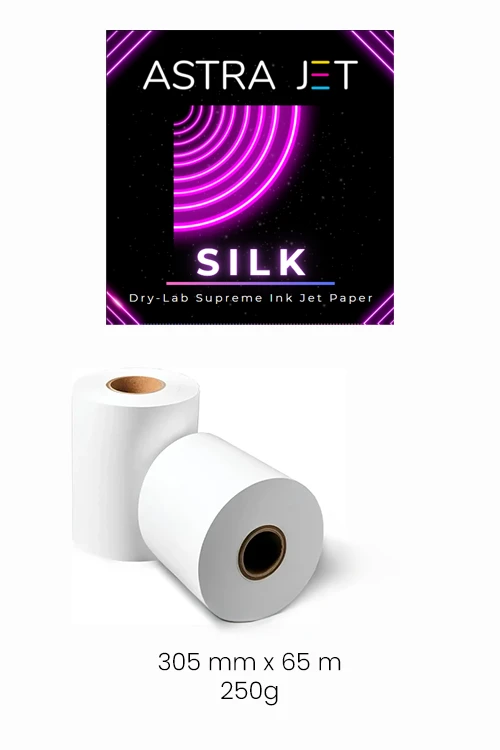 Papier fotograficzny Astra Jet Silk 30,5 cm x 65 m to wysokiej klasy papier fotograficzny przeznaczony do profesjonalnych minilabów atramentowych typu drylab. Jedwabista powierzchnia Silk nadaje odbitkom elegancki wygląd, ogranicza odbicia światła i zapewnia subtelną strukturę zdjęć.