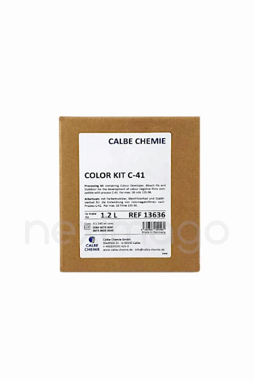 Calbe Colorkit C-41 1.2L – kompletny zestaw chemii do samodzielnego wywoływania kolorowych filmów w procesie C-41. Idealny dla ciemni domowych i pracowni foto. Prosta przygotowalność chemii, możliwość pracy w temperaturze 38°C lub 30°C, doskonała jakość obrazu i wierne kolory.